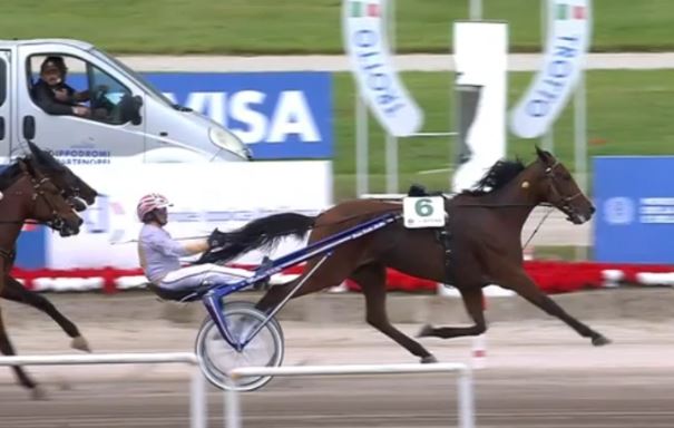 Race time was 1.11.7kr, the slowest of the elims. Finishing second was 30.9/1 Deus Zack for Eddy Loccisano followed by 16.3/1 Dylan Dog Font (6m Ringostarr Treb) handled by Vincenzo Luongo and 47.3/1 Click Bait for Andrea Farolfi.