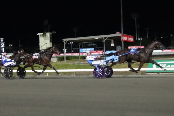 McMullen was denied the double in the following event when his smart mare Rylee Rhayne Bow just failed to hold off La Derniere (Hurrikane Kingcole) in the $76,500 QBred Triad four year old final for mares. Rylee Rayne Bow led but La Derniere who was behind the leader gained an inside run and in the shadows of the post snatched victory.