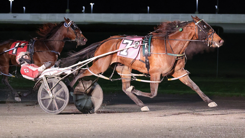 In the night’s final Borgata clash, Charlie May (David Miller) pressed on two-wide to the top nearing the 26.4 quarter while Mossdale Ben N (A Rocknroll Dance) and Stratton got away at the back of the pack. Charlie May continued on the front-end to the half in 55.1 but Mossdale Ben N had already come to the outside and picked up cover from Verdun (Pat Lachance on the third turn). The ball was still in Charlie May’s court at three-quarters in 1:23.1, but Stratton tipped Mossdale Ben N three-wide on the final bend, and behind a 27.3 last quarter, Mossdale Ben N vaulted to a 1 1/4 length victory over Charlie May in 1:51.3. Verdun was game from first-over and wound up third.