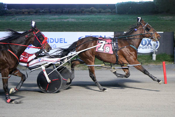 Luisa Hanover takes the inside road to victory lane (Lisa Photo)