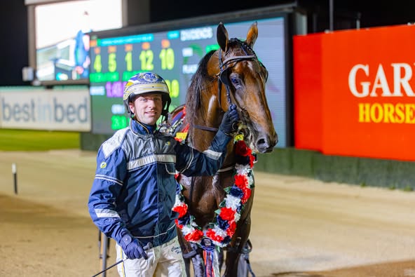 Confidently supported into favouritism on the strength of his ideal barrier draw Bay of Biscay pinged to the lead and from then on it was a matter of driver Cameron Hart nursing him along. Nonetheless he didn’t have it all his own way as he ran fast quarters of 26.9, 28.7, 26.8 and 26.7 seconds to keep his rivals running.