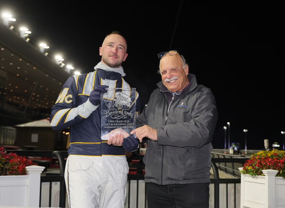 MILTON, October 24, 2025— Beau Jangles (Cattlewash) put an exclamation point on an undefeated freshman harness racing season Friday, winning the $700,000 (USD) Grade 1 Breeders Crown for 2-year-old male pacers by a length over Al Papi in a stakes-, track- and Canadian-record 1:48.3 at Woodbine Mohawk Park. Melillo finished third.