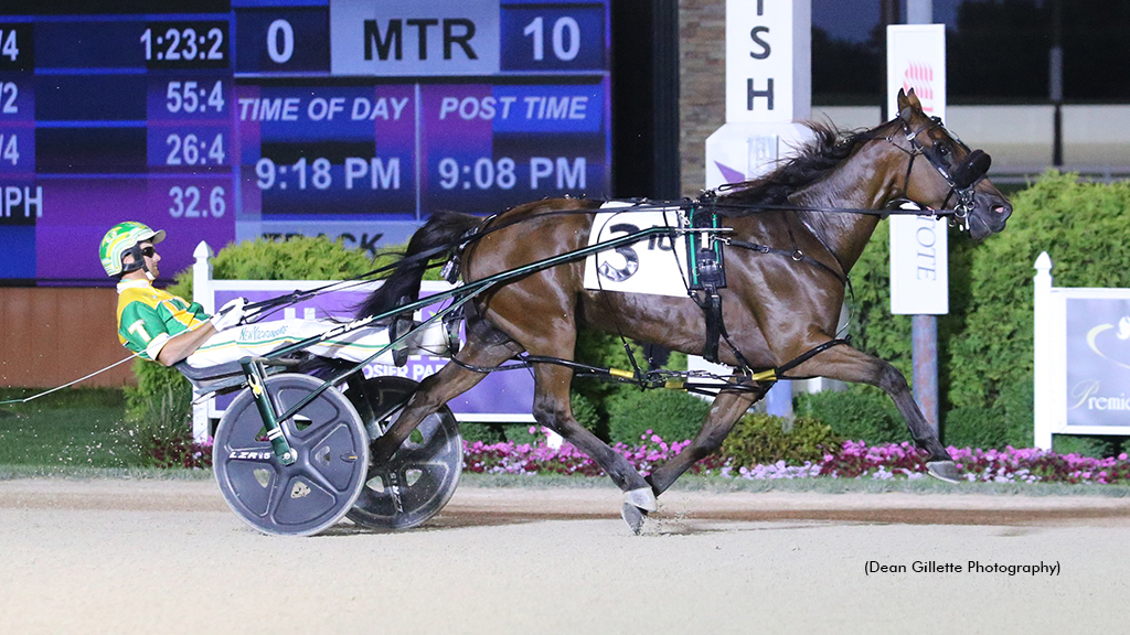 Driver Trace Tetrick and trainer Tyler George each widened their lead atop the Harrah’s Hoosier Park standings while teaming up for a big night on Friday, July 18, including a sweep of both divisions of the fifth leg of Indiana Sire Stakes for three-year-old pacing colts.