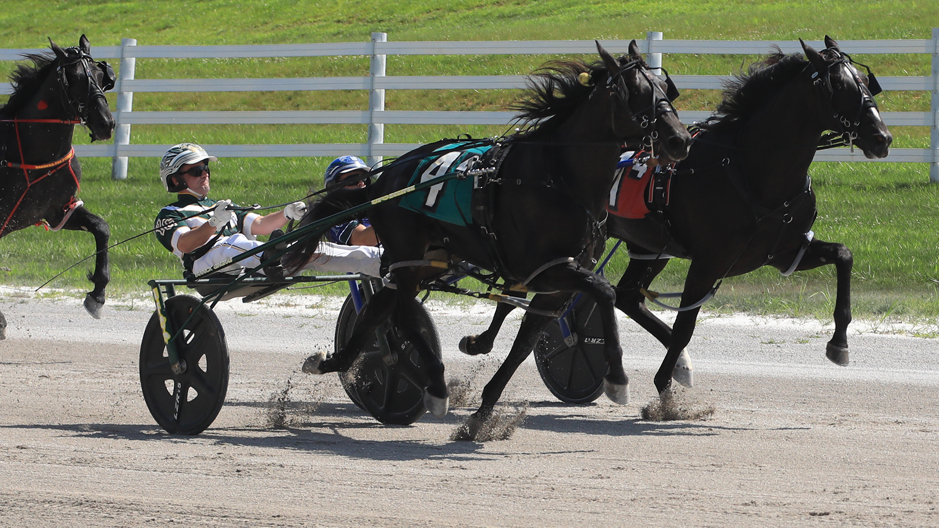 Burke and Gingras’ marquee win of the afternoon came in the first of three $40,000 splits for 2-year-old pacing colts and geldings when What Nooo Waaay (Check Six) posted the fastest mile by his division with a 1:53.3 effort, which was two-fifths of a second shy of the fastest mile on the whole day. Gingras worked a pocket trip behind pacesetter Funky Buddha (driven by Todd McCarthy) through fractions of :28.2, :57.2 and 1:26.2 before promptly pulling pocket with Papi Rick (Andy McCarthy), who broke at the start, rushing on the rim from last. What Nooo Waaay avoided getting locked at the pylons and sparred gamely with Funky Buddha to the finish to grab the victory by a neck while Always Has Been (Scott Zeron) saved ground and chased in third with Papi Rick fading to fourth.