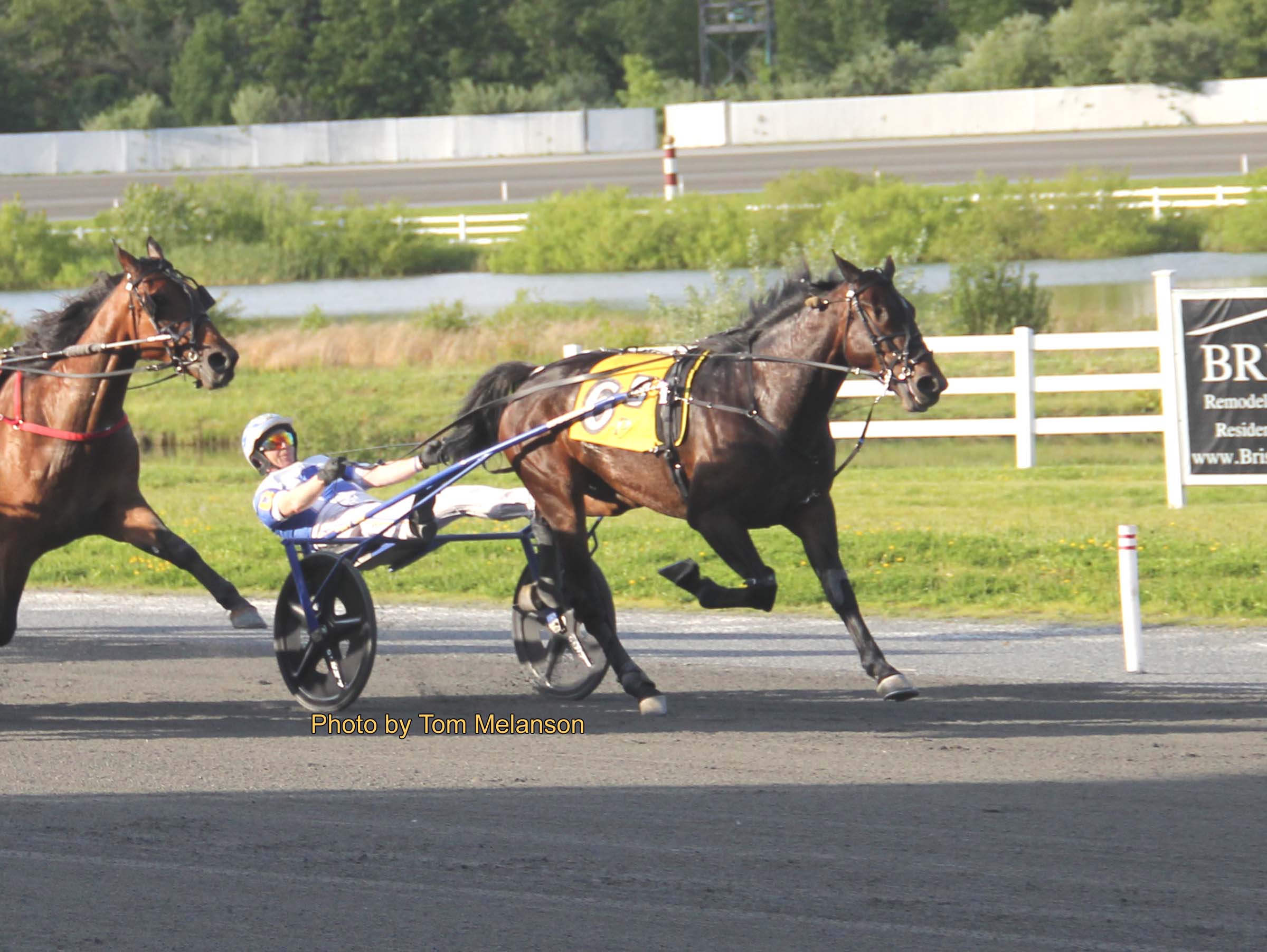 It took a little over a quarter mile for driver Shawn Gray to get the lead with Morning Edition, but once he cleared in front of the stands, he was unbeatable. Morning Edition got to the half in :56.1 and three-quarters in 1:24.3 with Duly Resolved (Brett Beckwith) pushing the issue during those fractions. After rounding the last turn, Morning Edition maintained a slim advantage as the field fanned out in chase behind him, and held in to win by one-half length in 1:53.4.