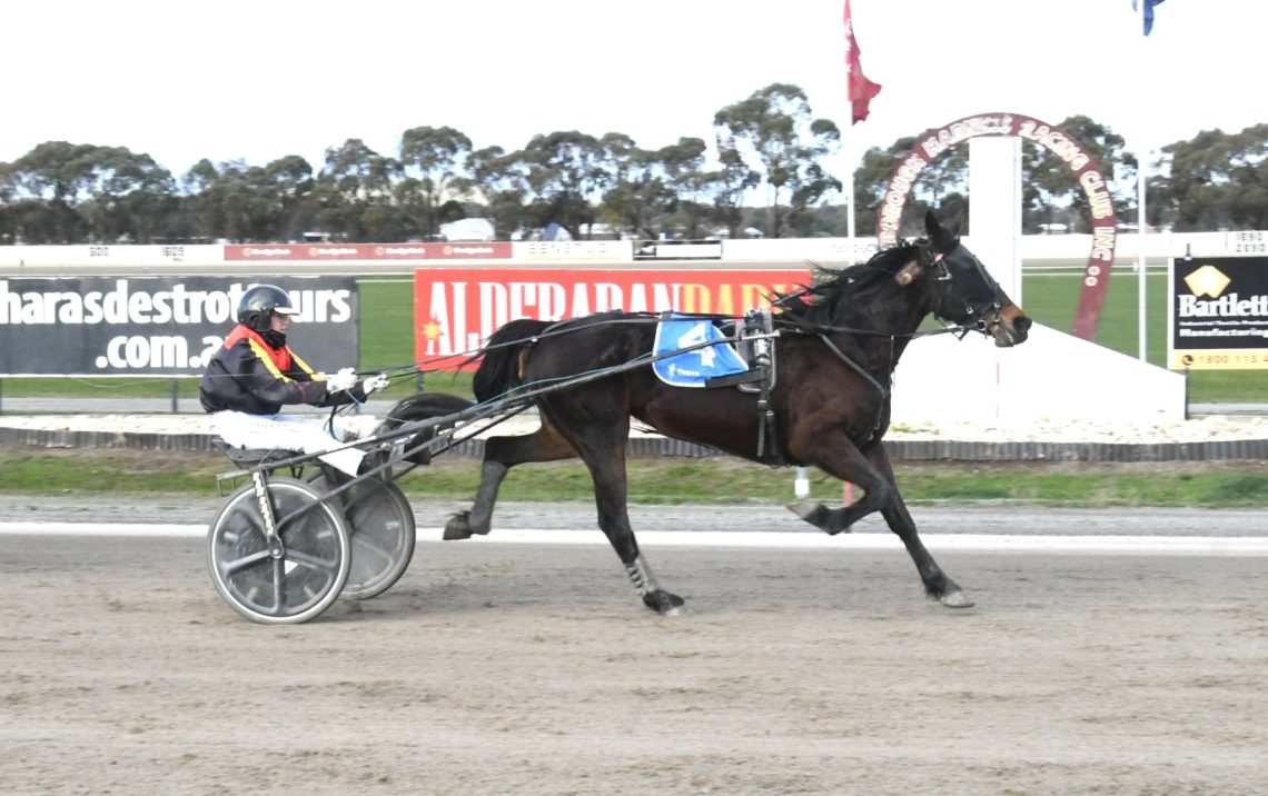 Jardine’s triumph came with a polished performance aboard the seven-year-old trotting mare Champagnes (Bacardi Lindy), trained by Wedderburn horseman Nick Youngson.