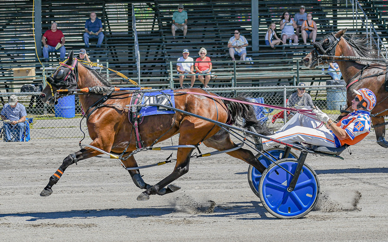 WINDSOR, ME – Under sunny skies with a full grandstand of fans, Windsor Fair hosted two $17,000-plus harness racing divisions of the Maine Sire Stakes for 3-year-old pacing fillies on Sunday (Aug. 24), the opening weekend of Maine’s second largest agricultural fair.