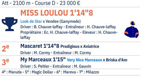 Descended from the maternal line of Quasar Joli (9 wins for €379,110 in earnings), Miss Loulou has only improved since her initial success in May.
