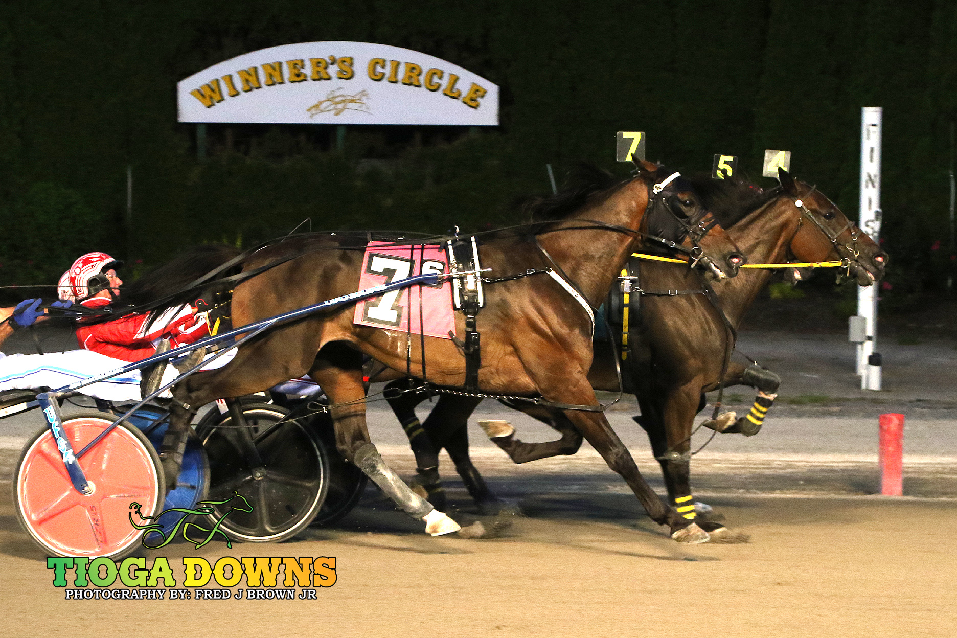 Chuckthemillionair (Kyle Dibenedetto) captures the featured $17,000 Open Trot at Tioga Downs on Saturday (August 23).