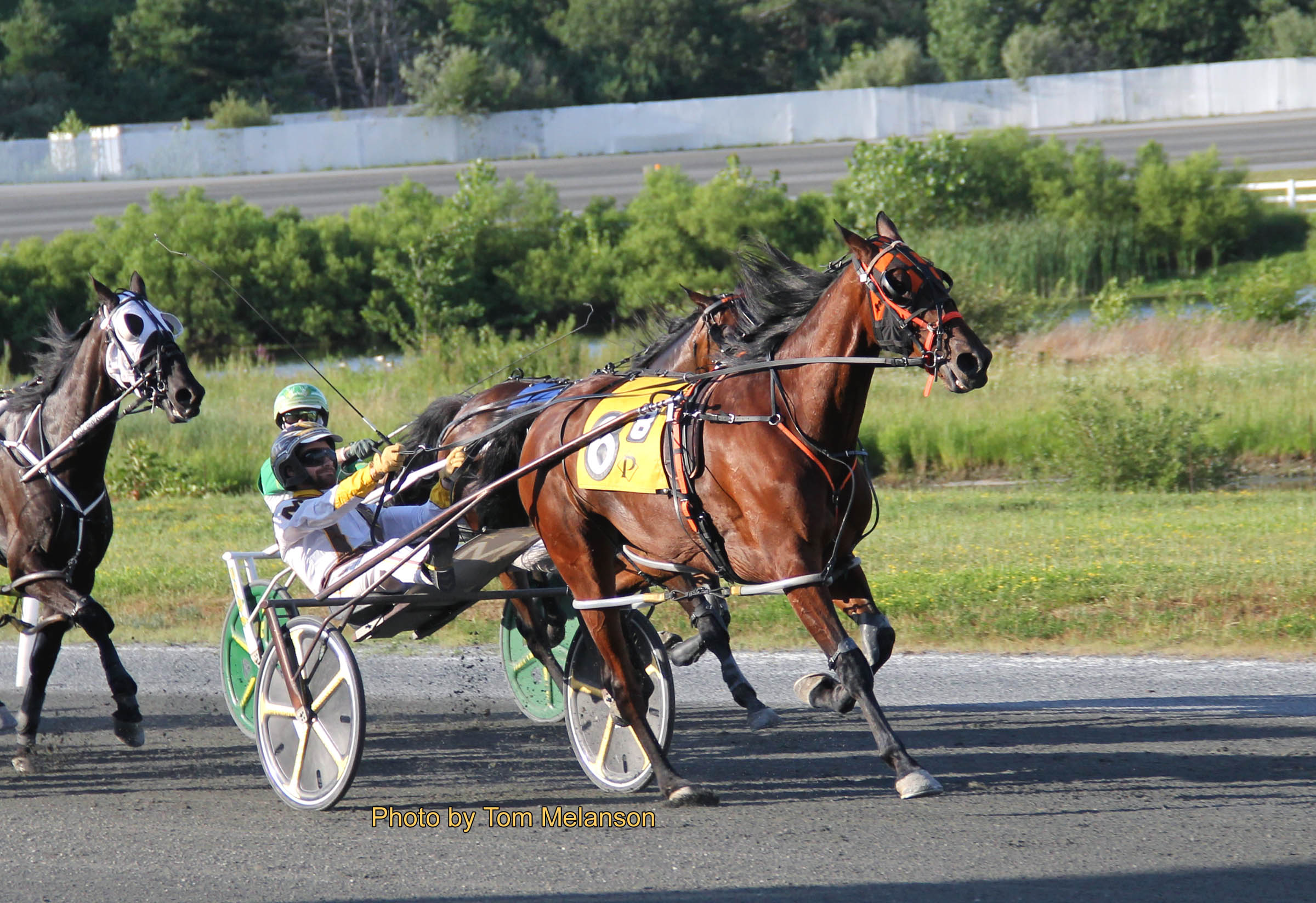 Plainville, MA — A pair of $14,000 mid-level Trackmaster races topped the harness racing bill at Plainridge Park on Tuesday (July 8) afternoon and both winning horses posted identical times and margins of victory.