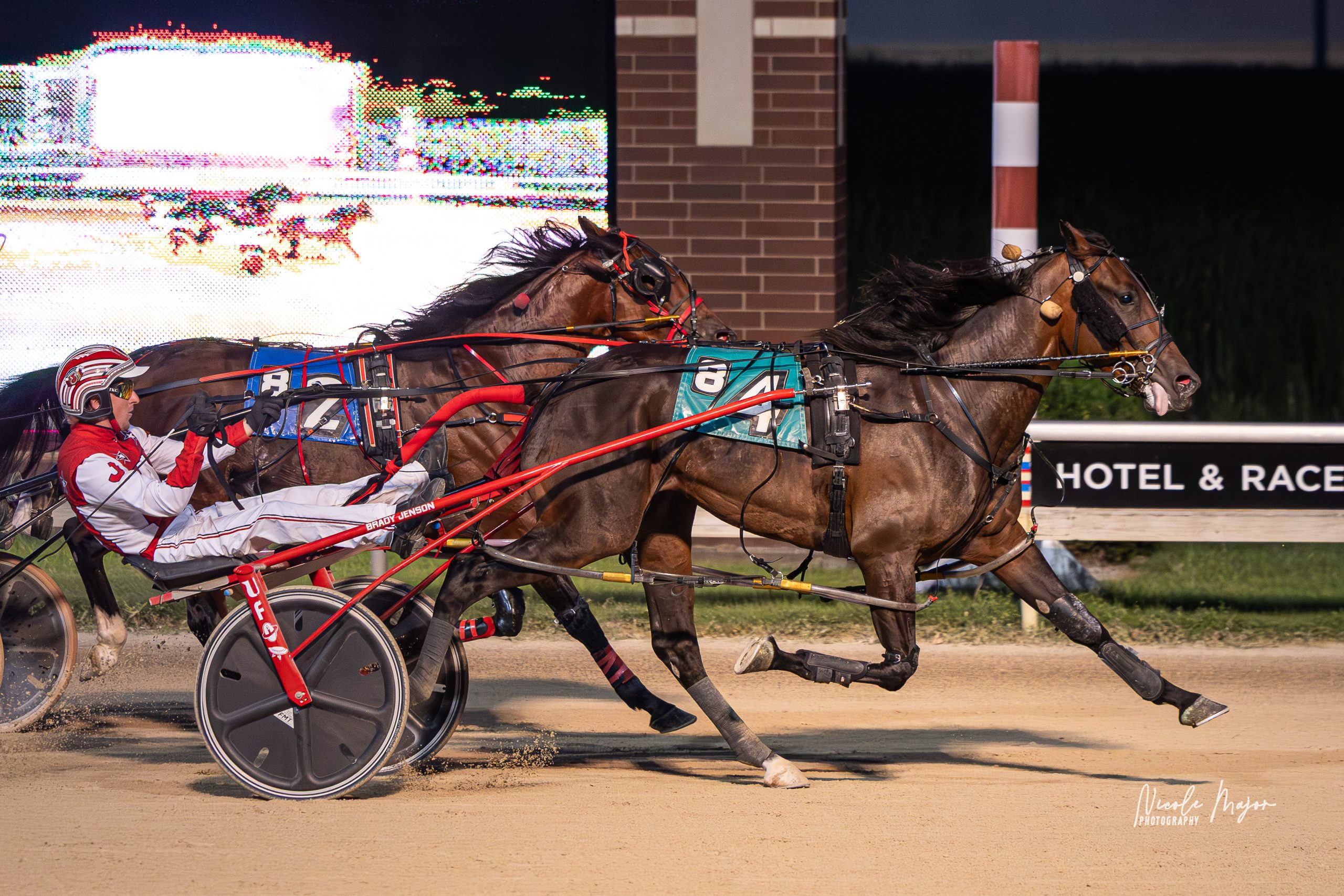 Peanutbutterfalcon (Rick Magee, $7.40) posted his sixth win of the season with a career best 1:57.2 effort over Mr Boombastic and Braggen Bliss in the $21,000 sophomore ‘A’ trot for owner Jeralene Roland and trainer Dan Roland. The very sharp son of Quality Kemp now shows thirteen career wins with total earnings of $144,775.
