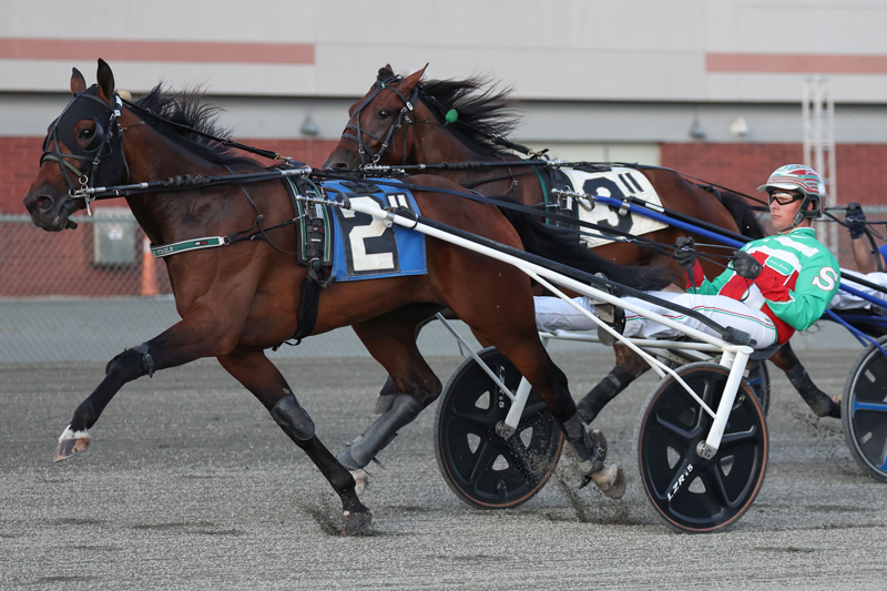 Driven by Jordan Stratton, Seismic Step cut fractions of 27.1, 57 and 1:27 with BJM’s Lil Man (Tyler Buter) in the pocket, Seven Layer (Niko Karna) third and Karinchak (Mark MacDonald) distanced after he broke before the start. Karna sent Seven Layer to the outside before three-quarters and loomed on the rim to the wire, but he could never reach Seismic Step, who wound up the winner by a length. BJM’s Lil Man and Karinchak completed the order.