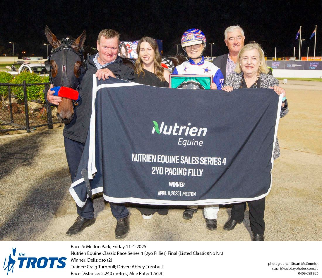 Bargain purchase Delizioso (Ride High) gave her young harness racing driver Abbey Turnbull her biggest success to date when she finished too well to take out the Listed $200,000 Nutrien Equine Classic final for two year old fillies at Melton on Friday night.