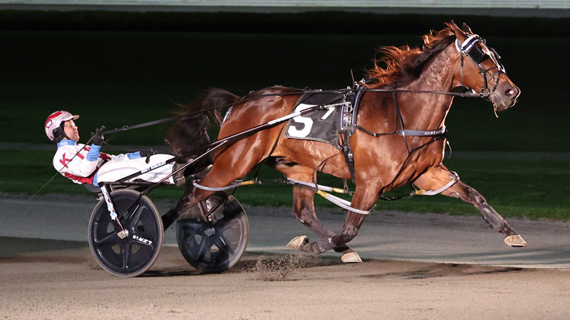 Jordan Stratton got on the board in the second split with Mossdale Ben N (A Rocknroll Dance), who grabbed his third victory in the series with a 1:51.2 effort from first-up. Why Not Now (Kakaley) carved out panels of 26.1, 55.2 and 1:23.2, but Mossdale Ben N, who vacated the pylons from fourth before the half, made steady progress on the rim and then went by Why Not Now on the final bend. From there, Mossdale Ben N had no issues, downing a second-over Himself N (Bartlett) by a length and three-quarters. Charlie May (Ron Cushing), who got shuffled behind Why Not Now after he got passed, was able to tip off the cones late on the final bend and ended up third.