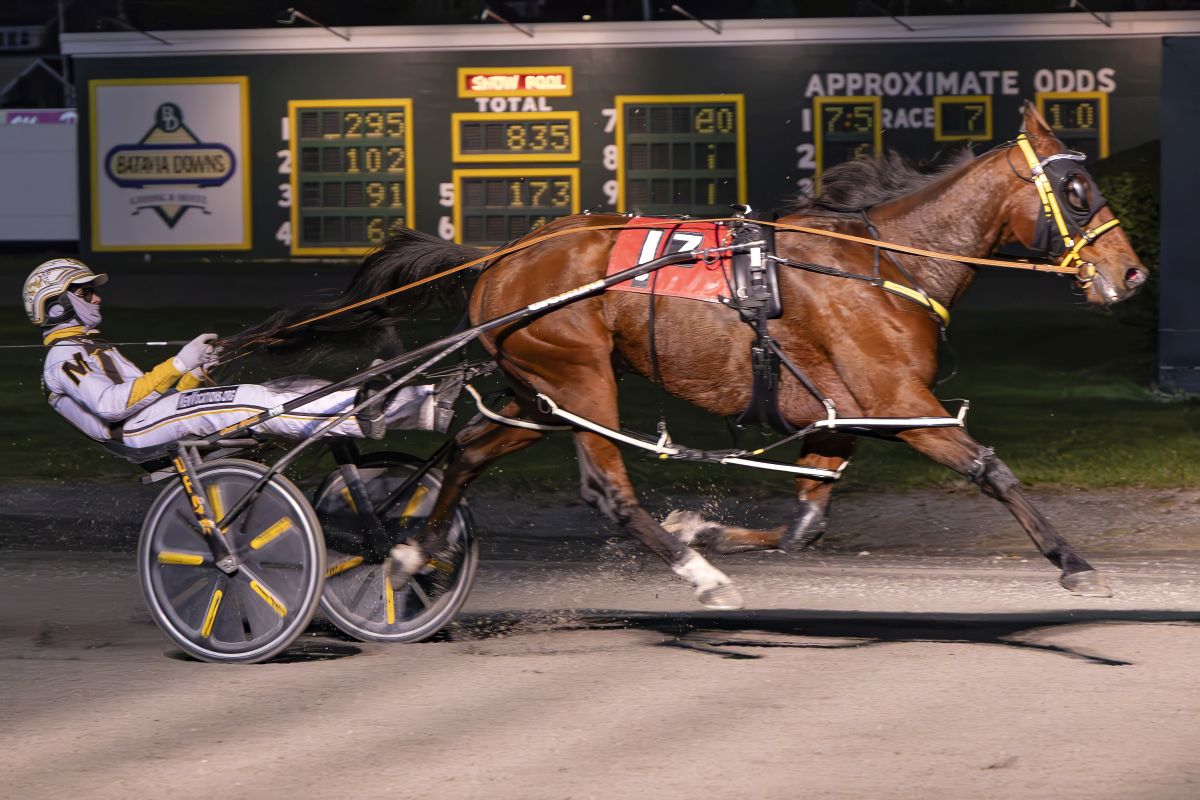 Batavia, NY — The weekly $12,500 Opens for the best pacers and trotters on the grounds were once again held on Saturday (Nov. 8) night and the winner of both was piloted by the track’s leading harness racing dash driver, Drew Monti.