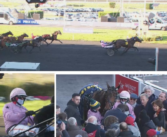 Second was pacesetter 4.2/1 Horchestro (9g Sam Bourbon-Alisma du Corta) handled by Eric Raffin for G.R .Huguet training for Gerald Dambach. JPD bred this one. Home third was 56/1 Hulysse Gigeo (9g Reve de Beylev) with J.W.Hallais up, the trainer and owner. He raced with shoes. Working Class Hero (7m Village Mystic) was fourth at 5.6/1 for Mathieu Mottier and trainer Jorgen Westholm, followed by 10/1 Jango Vici (7m Dragon des Racques) with Francois Lagadeuc up for trainer Antonio Ripoll Rigo.