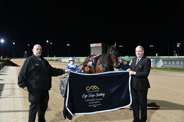 Eye Keep Smiling (Sweet Lou) who is arguably the nation’s best mare currently in the country gave another dazzling display with an all the way win in the Listed Ladyship Stakes named after her at Menangle Park on Saturday evening.
