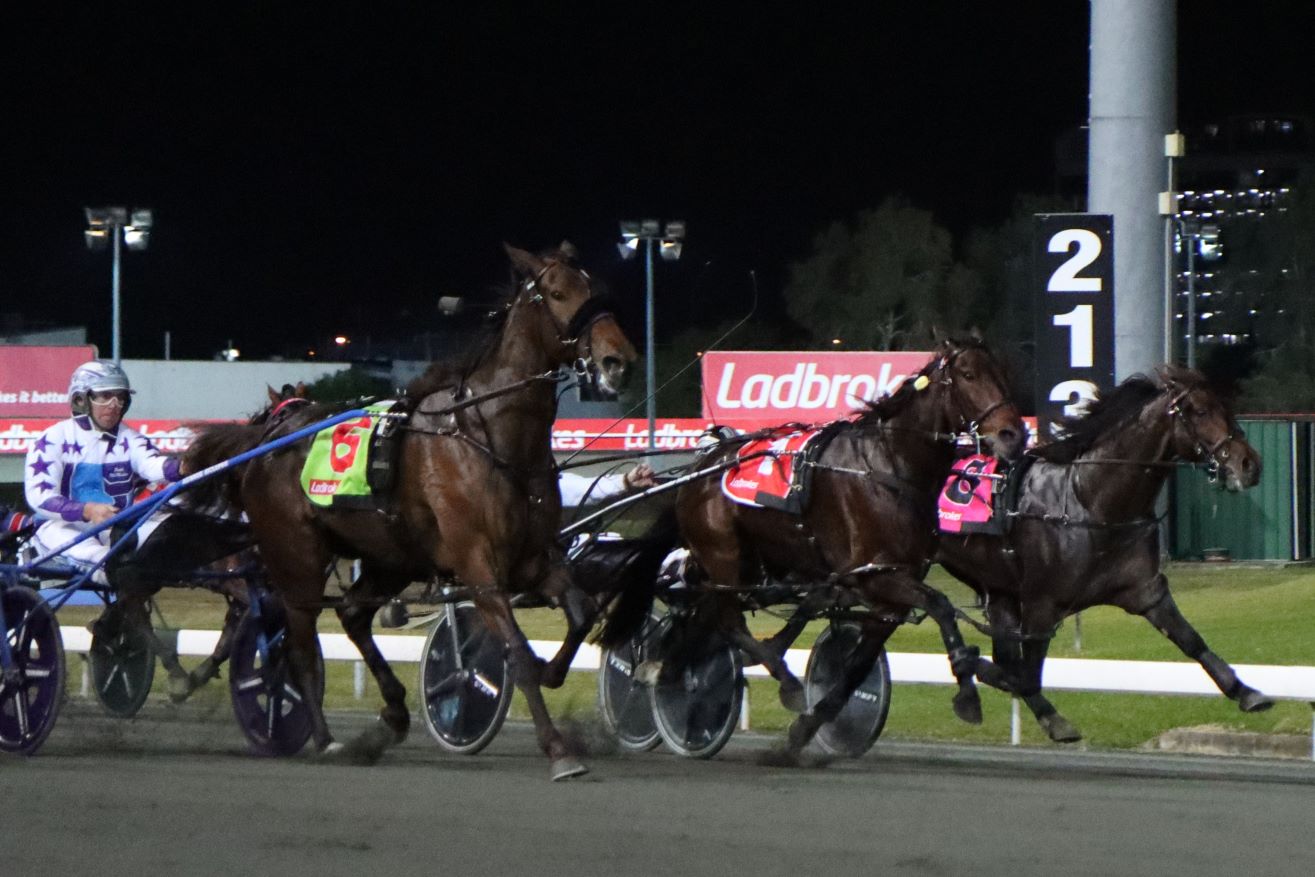 Jack’s Ultimate Fury who gained a run as an emergency went around the field at the same time as favourite The Janitor whose driver Pete McMullen raced up to sit outside the leader.