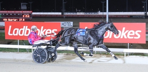 Trainer-driver Rohan Hillier dictated affairs, running a lead time of 83.6s before quarters of 29.6s, 30.9s, 27.7s, and 28.3s. The mile rate was recorded in 1:59.4s.