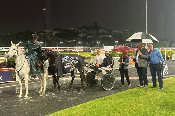 The QBred 2YO Fillies Final was taken out by Chantal Turpin trained Beachbabe Crocker (Somebeachsomewhere) who caused an upset beating her more fancied stable mate Wontyoustaywithme. Driven by Angus Garrard Beachbabe Crocker enjoyed the trail behind the leader Stripes who tried to lead all the way and whose driver Tom Callaghan nearly stole the race with his front running tactics.