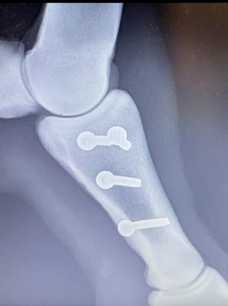 Surgery for “Mo” involved putting four bolts in the fractured leg.