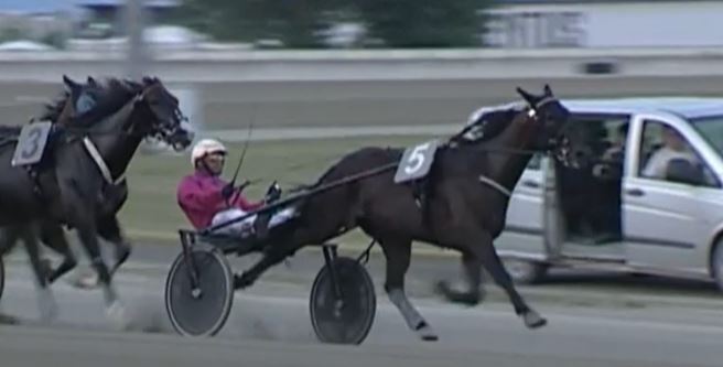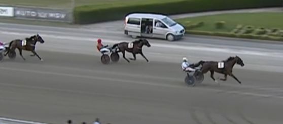 The filly division Breeders Course (purse 10,000€, 1600 meters autostart) saw 6.8/1 odds Gaga Lady (3f Mister JP-Darmensita-Repeat Love) score handily timed in 1.14.2kr for driver Fed Esposito, the winner’s fourth career victory.