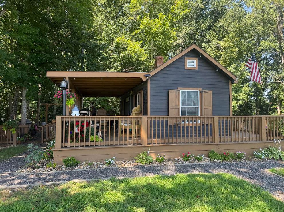 “We didn’t even know the cabin was here when I bought the property. It was an old slave quarters and there were trees all around it. This area was a Civil War battleground and is quite historic. We found lots of bullets, arrowheads and buttons during the digging and renovation process.”