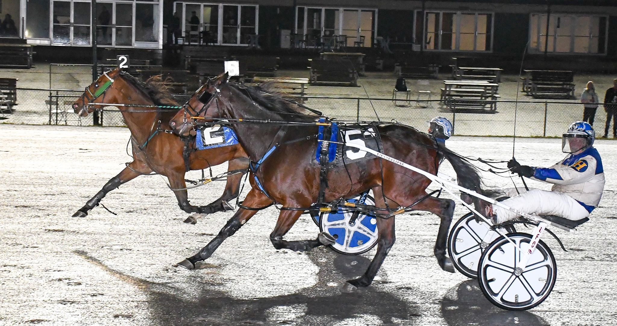 Gold Star Sven (Steeven Genois) takes the $8,500 featured pace on closing night of the 2025 harness racing season at Vernon Downs on Saturday (November 15).