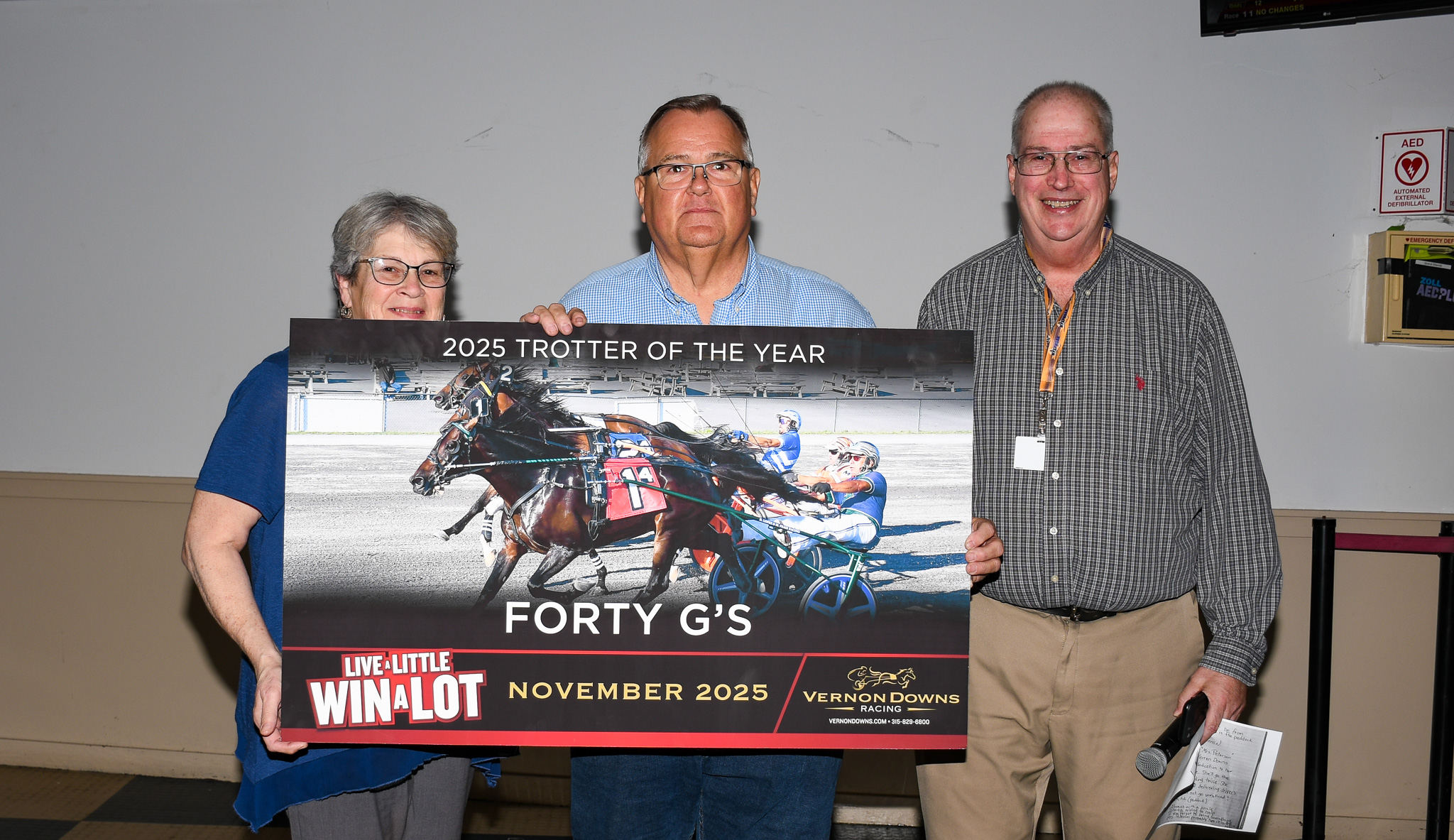 Forty G’s is the trotter of the year. In 10 starts he had 7 wins and two seconds. Forty G’s is a 4-year-old horse by Muscle Hill. He is owned by Mitchell Frair, Donna Duer, and trainer Roman Lopez.