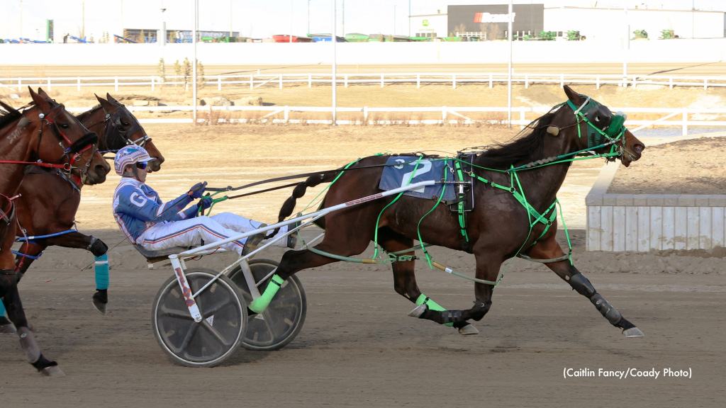 Goodbye Ceia Later (Vertical Horizon) said ‘goodbye’ to her harness racing competition, going the distance to win the $16,000 Fillies and Mares Preferred Pace at Century Downs on Wednesday, April 9 — a card that also featured a driving and training triple from Logan Gillis.