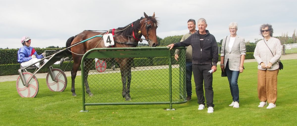 Trotting mare Spiritinthesky which part-owner Murray Swain bought from Gavelhouse, got her first win at start number twenty in the Betavet Trot.