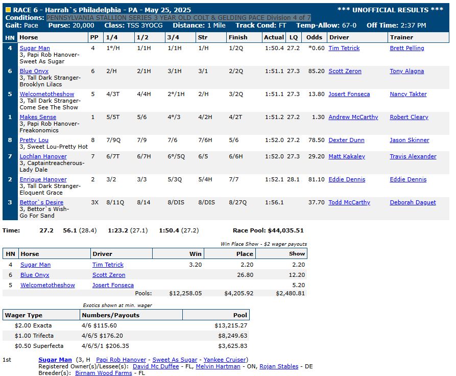 RACE 6 PENNSYLVANIA STALLION SERIES 3 YEAR OLD COLT & GELDING PACE Division 4 of 7