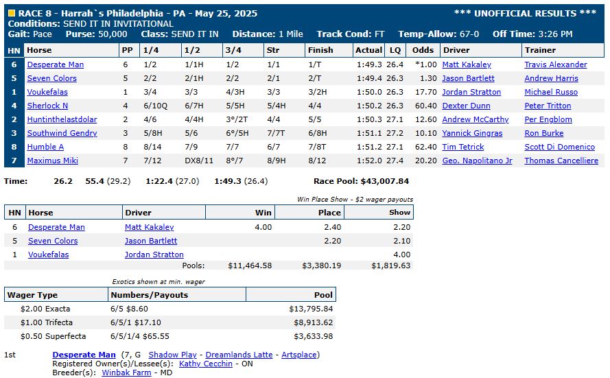Harness racing videos and results for Harrah’s Philadelphia “Super Sunday”
