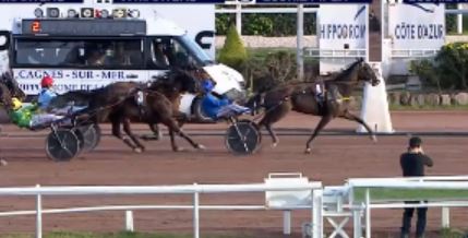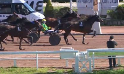 The featured Prix Roger Ledoyen (purse 49,000€, 2925 meters distance handicap, 15 starters ages 6-11) at Cagnes sur Mer this day went to 1.14.0kr timed Hooper des Chasses (8g Quaker Jet-Sonate du Chene) driven by Christophe Martens.