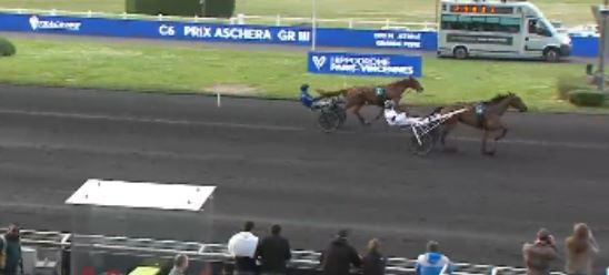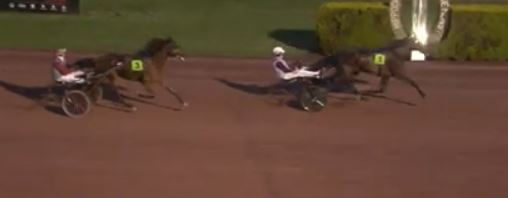 The winner recorded his 18th career harness racing victory in 44 starts for 431,040€ earned. The 1.3/1 odds favorite Ideal du Chene (7f Bird Parker-Royale du Chene-Hello Jo) was second for jockey Paul Philippe Ploquin, trainer Julien Le Mer and owner/breeder Yvonne Guedj.