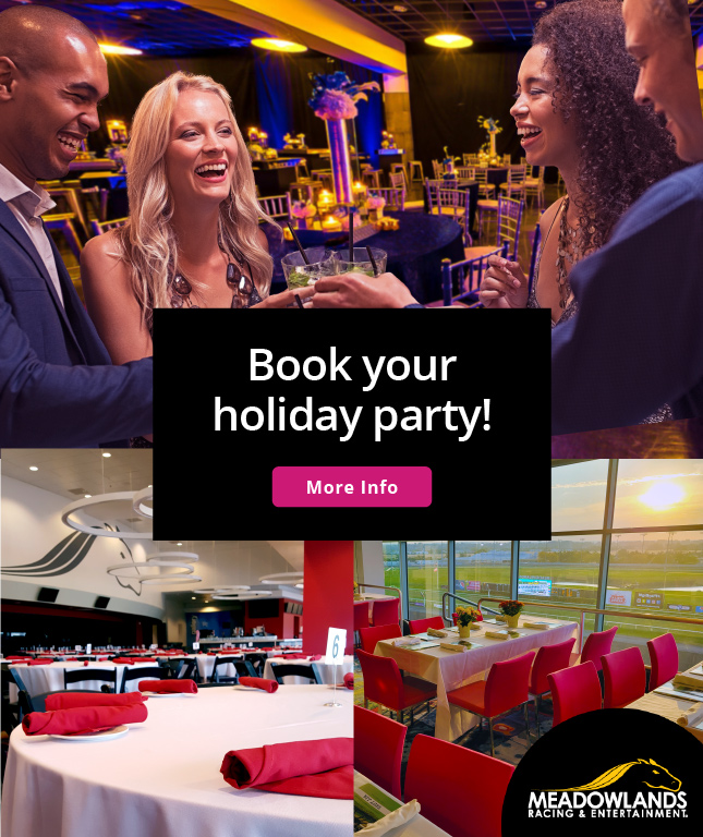 East Rutherford, NJ – Meadowlands Racing & Entertainment has several unique event spaces perfect for your family gathering, corporate holiday party, game day watch parties, and year-end celebrations.