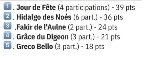 Alexandre Abrivard was the winning jockey for trainer Leo Abrivard and owner Jacques Cottel. This was the winner’s sixth career win and he has 228,480€ earned. Hot Summer (8g Ugor de Beauvoisin) was second at 29/1 odds with Quentin Seguin in the irons as he  too overcame a 25 meter penalty. J.M. Roubaud trains this one for owner Sylvain Roubaud. The 7.9/1 Charles OP (7m Mack Grace SM) was third with Gaetan Gilard the jockey  for trainer Yannick Henry followed by fourth finishing 79/1 In Love de Valmier (7g  Thorens Vedaquais) and jockey Lola Regnier.