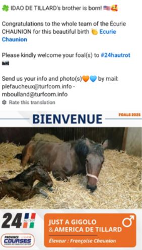 While Amerique winner Idao de Tillard is out of this sprinter distance triple crown race, he now has a half-brother by Just A Gigolo foaled this week.