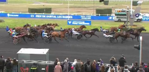 This day at Paris-Vincennes was held the Prix de Durtal les Raivies (purse 59,000€, 2100 meters autostart, 16 European starters ages 7-10) and 7/1 odds Instant d’Haufor (7g Amiral Sacha-Bastia Haufor-Paris Haufor) was placed first when Hadrien crossed the line first on the run and was disqualified. David Thomain reined this Christian Bigeon owned/bred/trained veteran that recorded his ninth career victory in 34 starts.