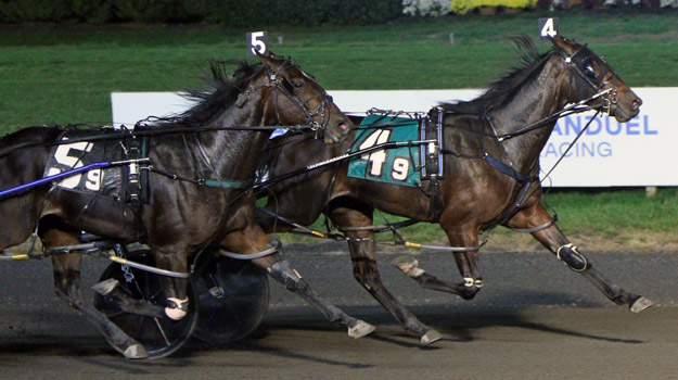 “The two [Rocknacious and Apocalypsebluechip] got out of there pretty good and the pace sort of backed up, so I moved him a little earlier,” Dexter Dunn said after the race, “but he’s really been racing good this year and getting better all the time. I feel like every time I sit behind him he’s matured more and more. Early on in the year his gait wasn’t 100 percent, a few steering issues, but Chris [Ryder] and the team have got him sorted out. Tonight, he was perfect; he felt great. I think he’s going to keep maturing and be a nice 3-year-old.”
