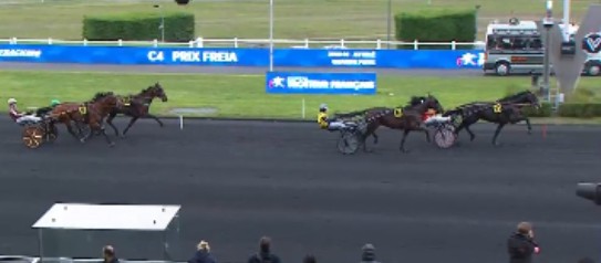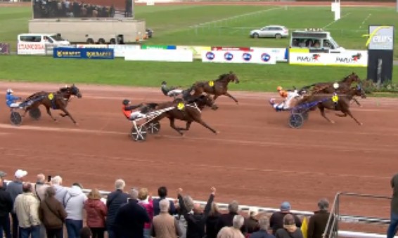 The previous day at Vincennes the Prix Freia (purse 60,000€, 2700 meters, 13 starters ages 4-5) went to the impressive 1.9/1 odds Karnac Wood (5m Ready Cash-Qualita Bourbon-Love You) handled by Hughes Monthule for trainer Sebastien Guarato and Ecurie Hunter Valley.