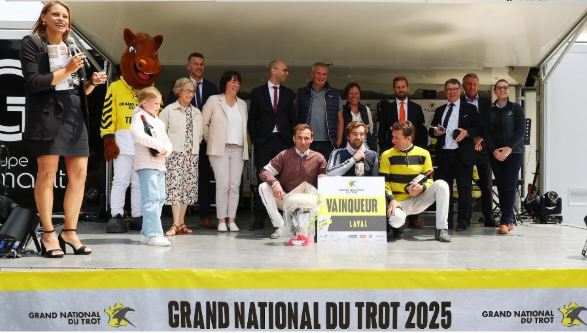 The sixth leg of the traveling trotting series GrandNational du Trot (also named today GP Jacques Moreau, Gr. III, purse 90,000€, 2850 meters voltstart distance handicap, 16 harness racing starters ages 6-10) at Laval went to1.6/1 odds favorite Jingle du Pont (6g Niky-Tina du Pont-Urfist des Pres) timed in 1.13.1kr.