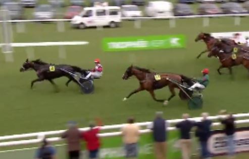 The 108/1 odds General  du Nord (9g Un  Mec d’Heripre-Odyssee des Bordes-Goetmals Wood) was second overcoming a 25 meter handicap for Bertrand Ruet driving for trainer Ronny  Kuiper and Stall Escapade AB the breeder/owner. Iliano des Plaines (7g Vanishing Point) was third at 9/1 odds for pilot Serge Pettier and conditioner Emmanuel Bouyer.