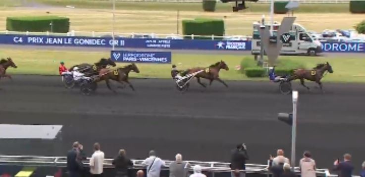 High level groupe tests highlighted a fine harness racing card today at Paris-Vincennes. In the Prix Jean le Gonidec (Gr. II, purse 120,000€, 2175 meters, 13 five year old open starters) the 2.2/1 odds Kanto Avis (5m Ready Cash-Ter Avis) scored timed in 1.10.6kr with Benjamin Rochard driving for trainer Marc Sassier.