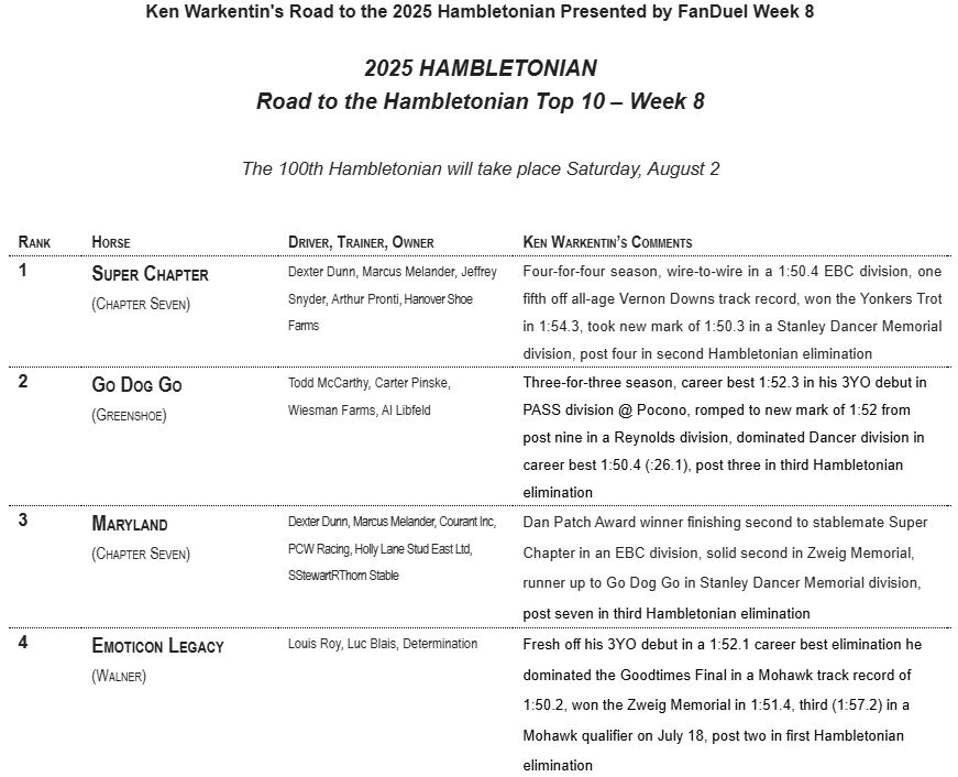 Ken Warkentin’s 2025 Road to the Hambletonian – Week 8