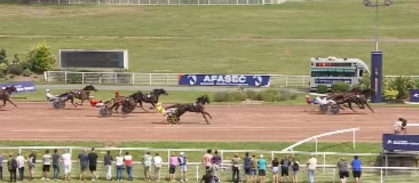 Louis Baudron trains the now two time winner of 96,555€ earned. Philippe Thirionet owns the Etiennette Dubois bred colt. The 2.4/1 Mix Cash (3m Earl Simon-Destinee Cash-Ready Cash) was second for driver Theo Duvaldestin and owner/trainer/breeder Thierry Duvaldestin.