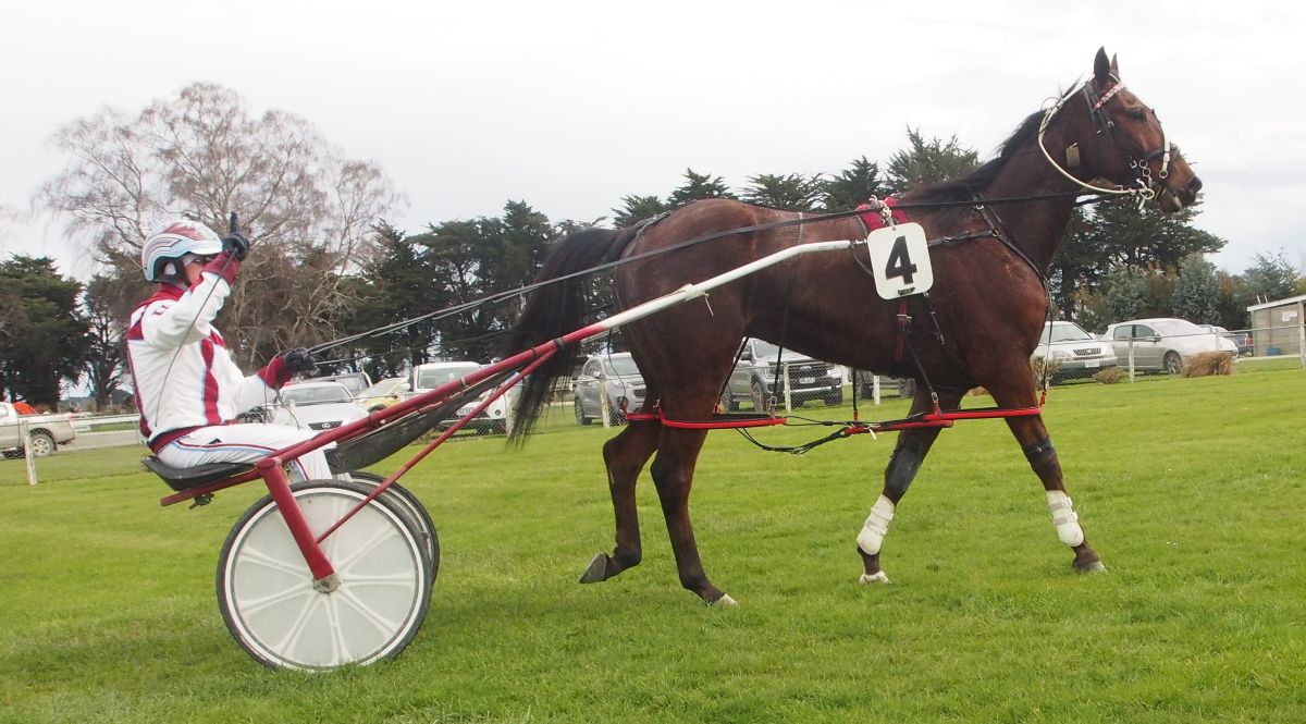 “He’s very big and a typical Always B Miki. But he’s got a very kind attitude to go with it. The form around him is very good. He’s a good grass tracker and won on the grass at Rangiora so we got him back for this time of year. To get a penalty free win down here was perfect,” driver Carter Dalgety said.