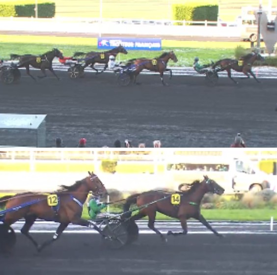 On today’s Paris-Vincennes harness racing card was the Prix Maurice de Gheest (Gr II International, 120,000€ purse, 2175 meters, 12 three year old starters) where 6.7/1 odds Neuvo Cash (3m Ready Cash-Enamorada-Goetmals Wood) scored for reinsman Theo Duvaldestin and the breeder/owner/trainer Thierry Duvaldestin.