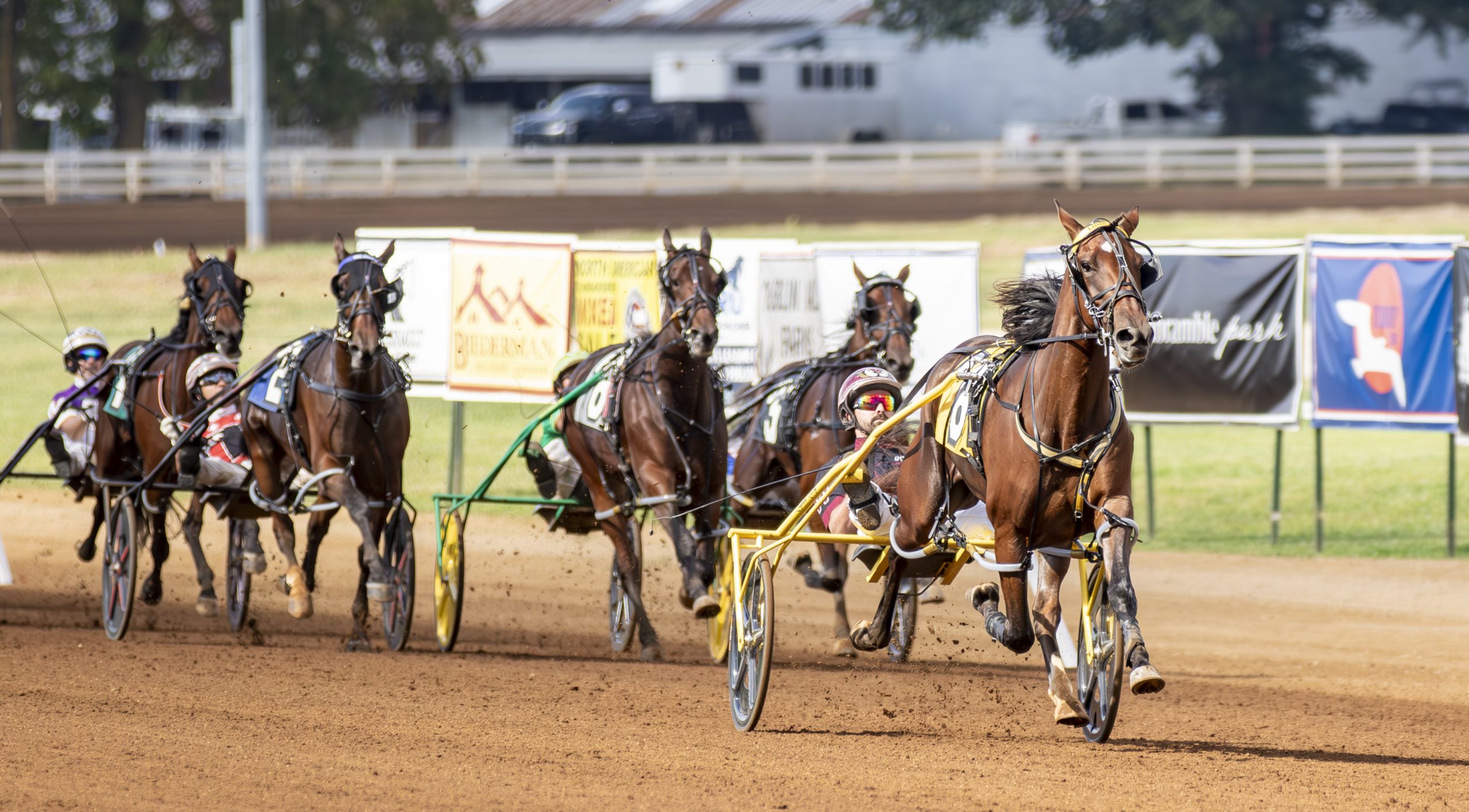 Andrew Harris pupil Topville Lucky (Dexter Dunn) wrapped the stakes action for freshman pacing fillies when notching her fifth win in a row while taking her division of the Tall Dark Stranger with a 1:49.1 effort.