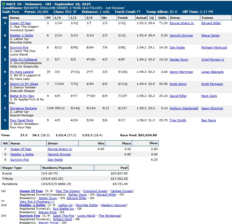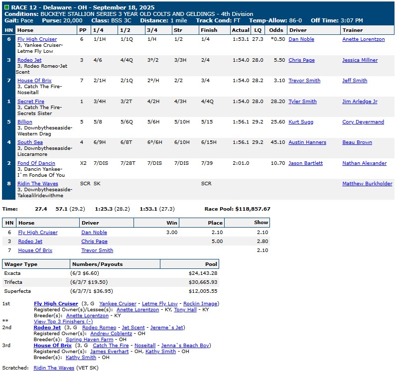 Gait: Pace Purse: 4,400 Class: OHFS 3C Distance: 1 Mile